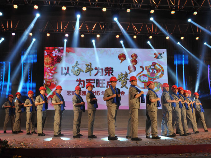 在中国传统新春佳节即将到来之际,为感谢一直以来关心和支持宏旺的各界友人和辛勤奋斗的宏旺同学们,同时给大家创造一个大联欢的平台,宏旺集团2016年迎新晚会于1月30日晚在肇庆宏旺新落成体育馆盛大绽放。集团戴促辉董事长、集团管理层、国内六省制造基地的员工代表,以及特别受邀出席的政府和银行代表、供应商、客户、合作单位等约700人出席晚会。
